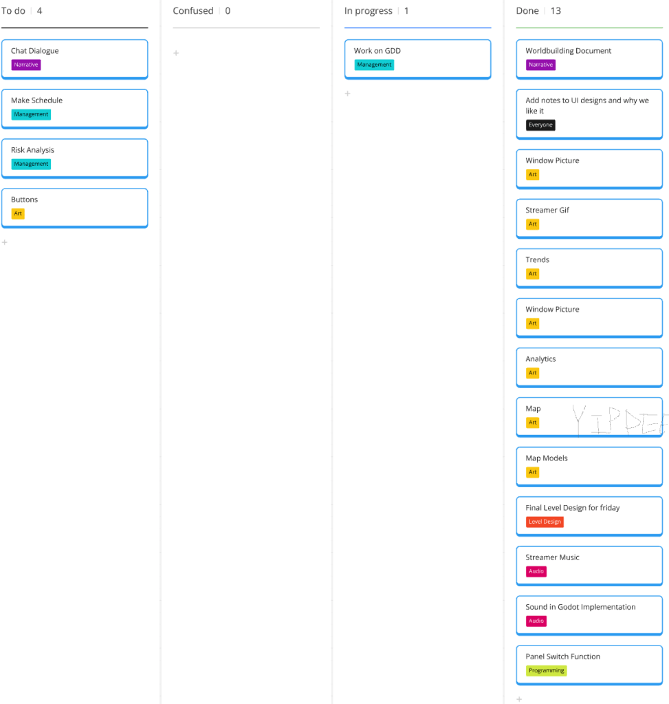 With those pipelines created I shifted my focus to sprints. Using Kanban boards to organize tasks and responsibility, I initiated the first sprint as a test. although not every task was complete I did learn so new information. If a person was not around for the beginning of the sprint, then they had no idea what was happening. So I needed to create a new column for any tasks that a person was confused about.