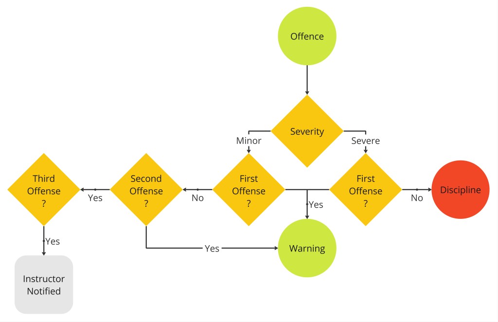 As the leader it was my job to create all the decision making and disciplinary pipelines required by the team. I decided to define major and minor decisions and make different requirements based on that classification I then did the same thing with offenses (any action which is bad for the group) and categorized them as severe or minor.